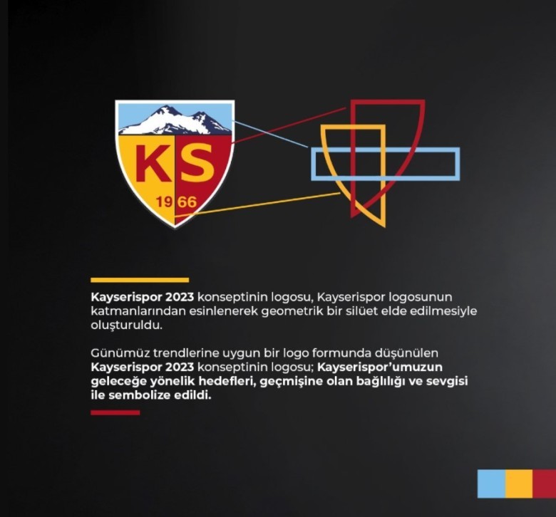 Kayserispor 2023 konseptinin logosu, Kayserispor logosunun katmanlarından esinlenilerek geometrik bir siluet elde edilmesiyle oluşturuldu.